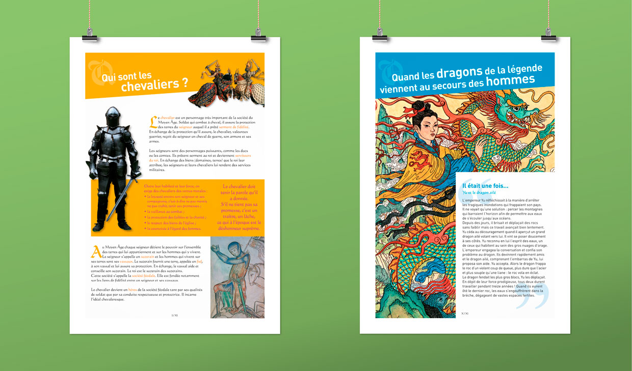 Destinés au jeune public, ces douze panneaux ayant pour thème les chevaliers et les dragons ont été réalisés pour animer des expositions ou des ateliers dans les écoles et les bibliothèques.